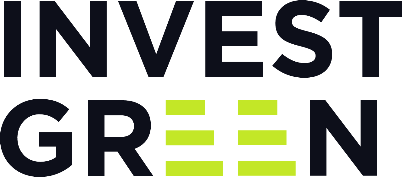 The InvestGreen logo is designed to be distinct, bold, and instantly recognizable. Its compact shape ensures clarity and impact across all applications, from digital interfaces to physical signage.